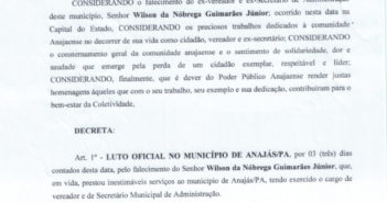 Em nome da Prefeitura Municipal de Anajás, a prefeita, Jacy Barros, e o vice-prefeito, Pedro…