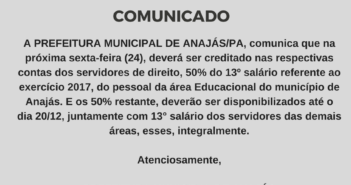 A PREFEITURA MUNICIPAL DE ANAJÁS/PA, COMUNICA A SEUS SERVIDORES E QUEM MAIS INTERESSAR, QUE AS…