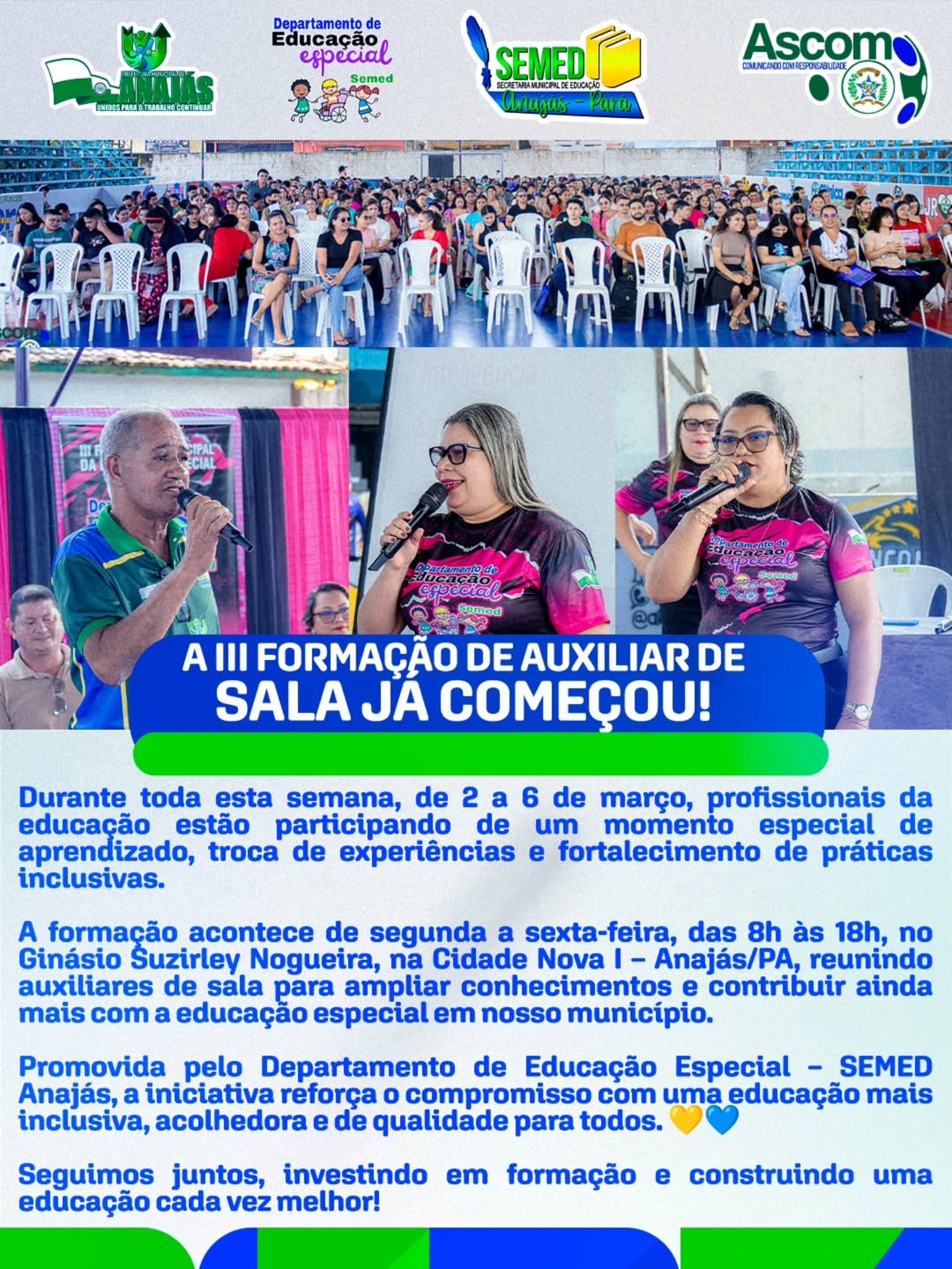 A iniciativa, promovida pelo Departamento de Educação Especial – SEMED Anajás, reforça que ninguém faz educação sozinho. É união, é dedicação e é responsabilidade com cada estudante do nosso município.